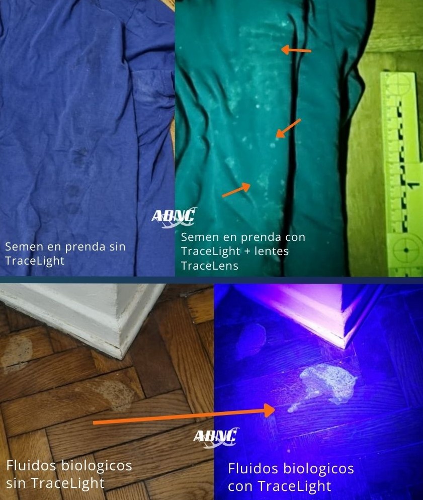 - Detección de fluidos biológicos: semen, sangre, saliva y otros rastros invisibles a simple vista.