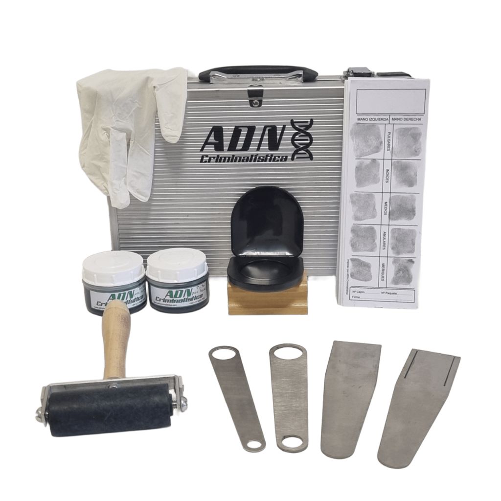Este kit especializado contiene todos los elementos para realizar la toma de impresiones dactilares en cadáveres y en personas con incapacidades motoras en sus manos.